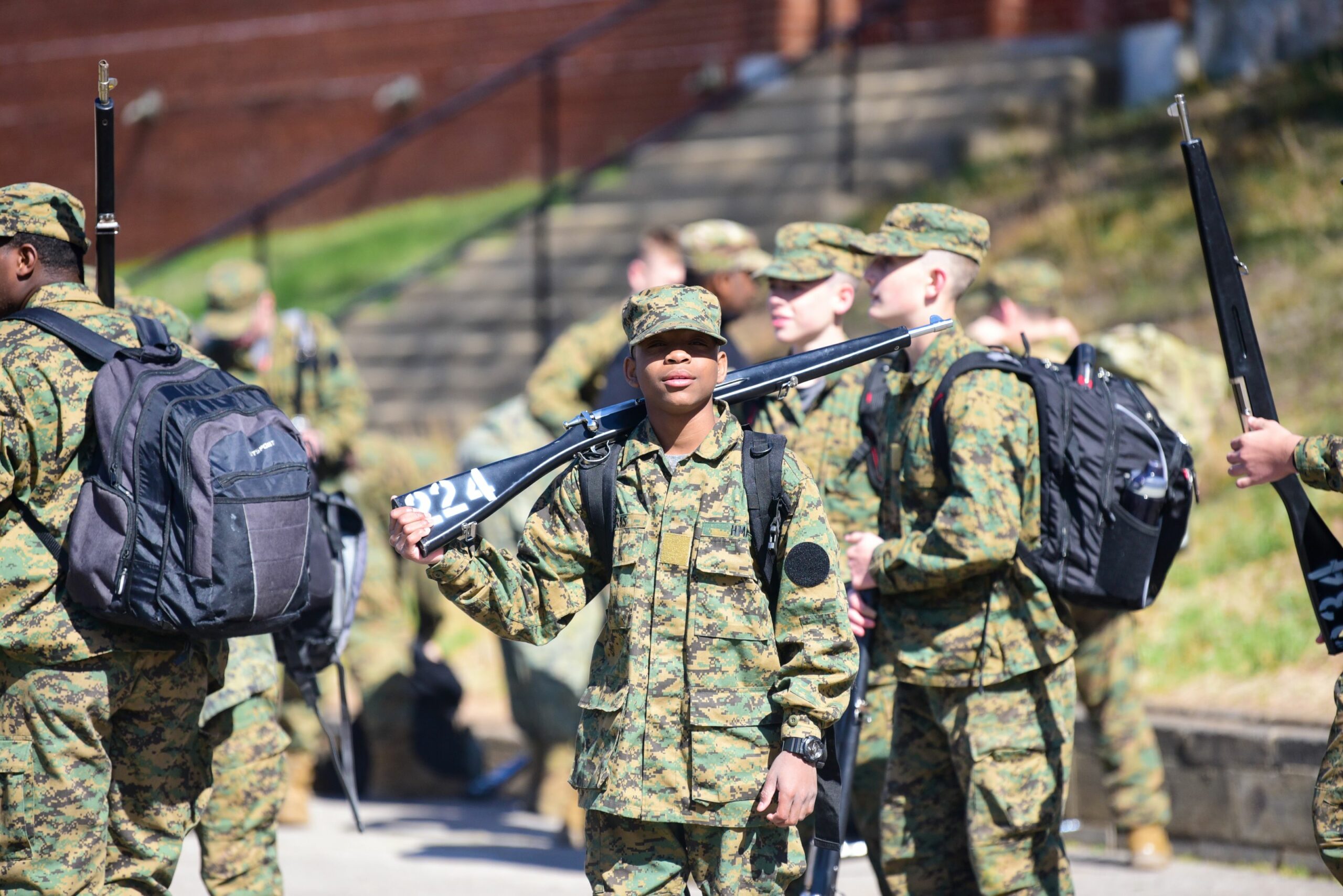 Unfortunately, several Cadets did not arrive as the sandman had them still asleep in their beds as the 0500 Cadet test started. Only 28 Cadets were present for the test where they were not allowed to doze off or they would face failing that event. The musical choice of Corporal Gallivan sounded like what you would hear in an elevator and did its job getting a few of the Cadets a little too relaxed and dismissed. After the test was completed the Cadets were directed to change into their full dress uniform for a uniform inspection and where they were made to individually recite the school song.