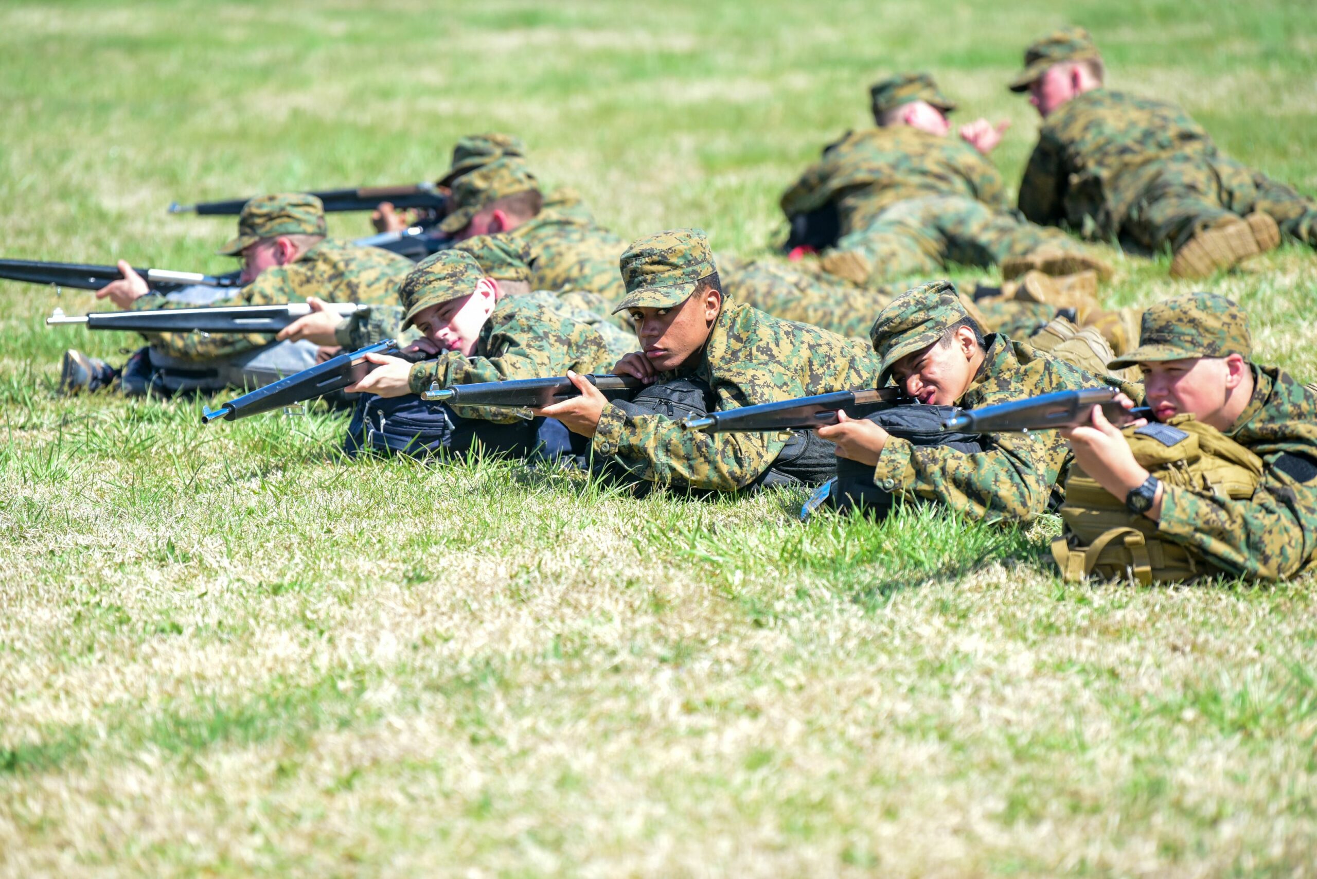 Immediately following the life-saving event, Cadets picked up their rifles and packs and began a timed 5km hike which had them traverse several hills, on uneven footing, and even through smoke. Once they had all completed the 5km hike, they were required to hike the 1.5km back to the track where they would eat dinner. Following dinner and once it was dark, the Cadets were split up into 3 or 4-man teams to conduct the “Escape and Evade” event. With less than 2% illumination from the moon, the teams were required to move across the wooded areas in the back of the campus to locate twelve points and to retrieve three markers from key points. Without the aid of flashlights, the teams were set out to walk about 2.5 miles in the dark while also evading the roving patrols of Cadre and TACs. The first team back did so in less than one-and-a-half hours and the last team returned right at the deadline of 2300. Their training on map reading and orienteering worked as every single team was able to locate the required points.